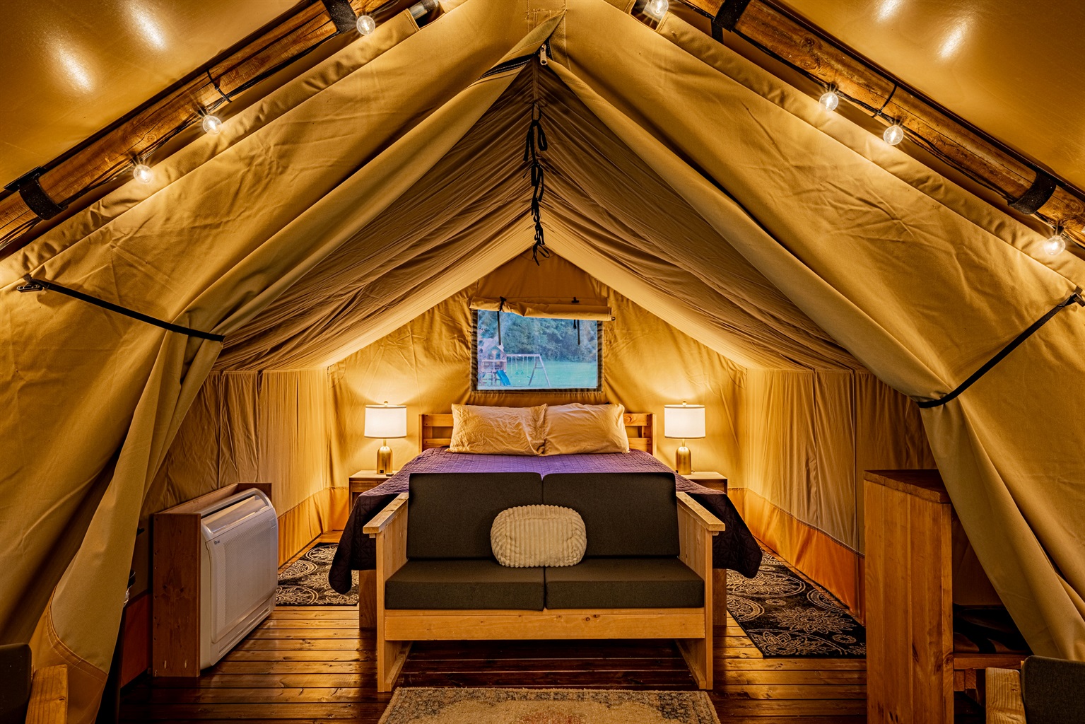 Craving a unique mountain adventure? Look no further! Our exclusive group glamping site, nestled in the heart of Eastern Tennessee, offers the perfect blend of rustic charm, modern comfort and convenient location. Ideal for families and friends seeking a memorable getaway just outside the hustle and bustle of Pigeon Forge and Gatlinburg, our safari tents provide a cozy haven amidst breathtaking natural beauty.